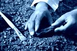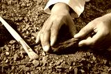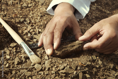 Scientist pick up trilobite fossil find from ground