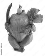 The smoked chicken with pepper, salad and a tomato