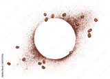 Coffee beans and coffee powder with round copy space