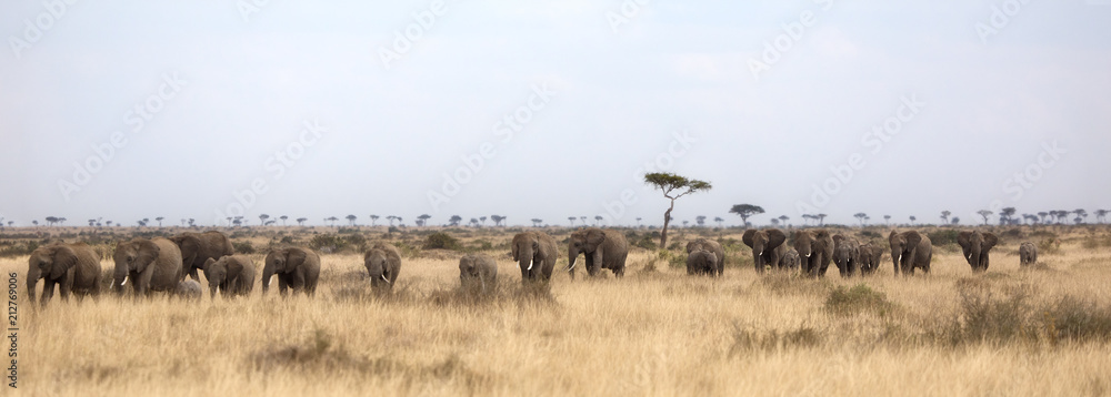 Herd of elephants in the Masai Mara