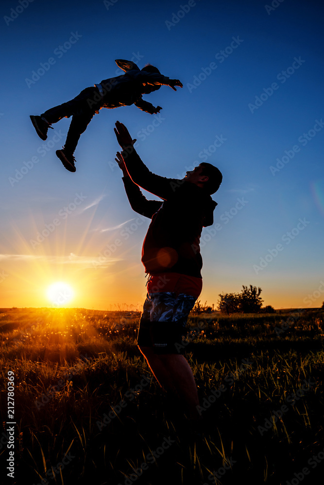 the dad throws up his son on sunset