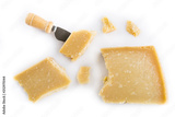 Queso parmesano aislado sobre un fondo blanco para una comida saludable