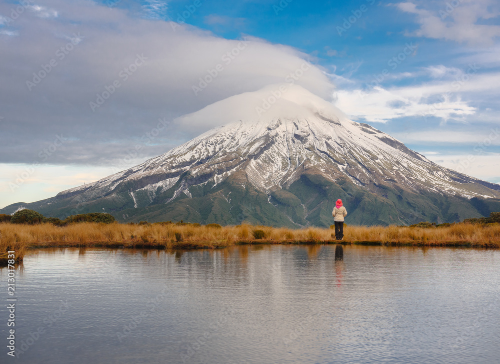 Hiking at the majestic Mt Taranaki, Egmont National Park, New Zealand