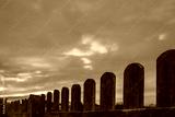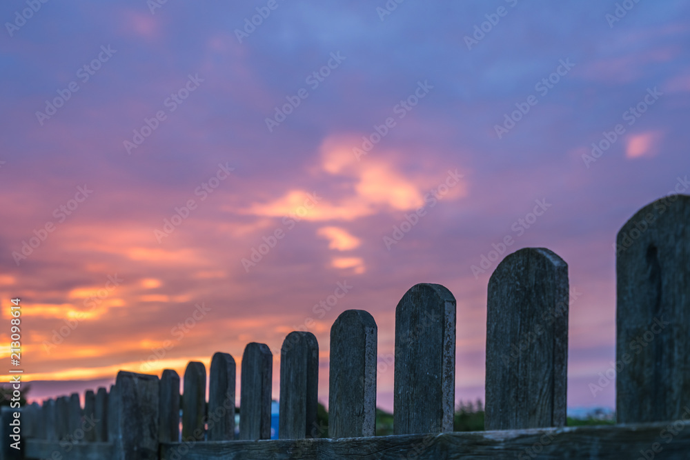 Wooden fence and sunset sky