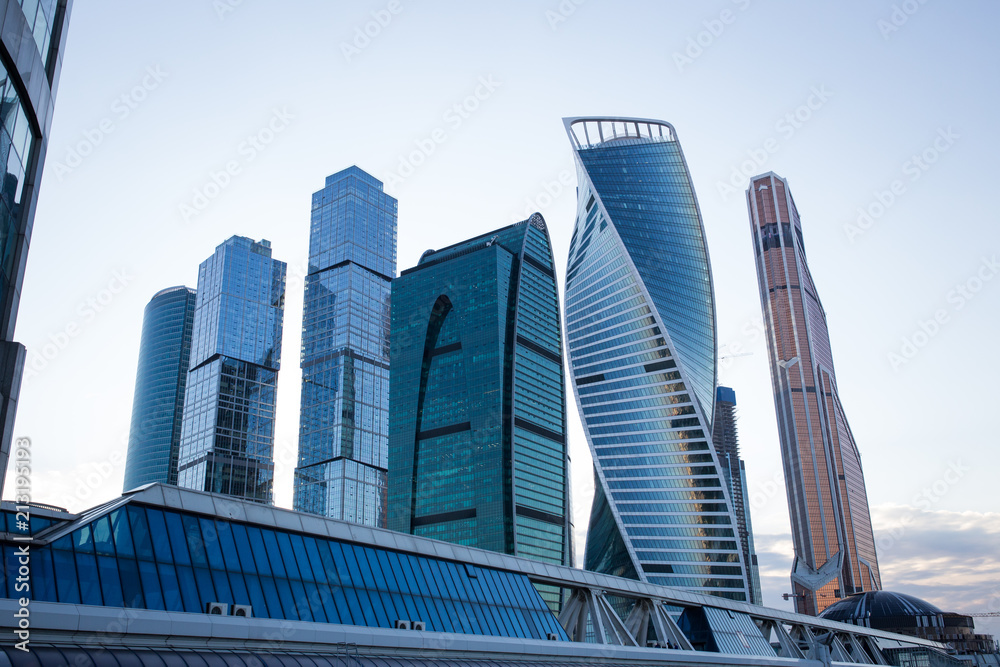 Skyscrapers with glass windows. Photographed in the daylight in the sunlight
