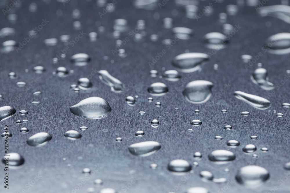 Slice of lemon on a steel reflective background with water drops close-up