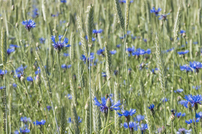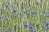 wild cornflowers in a wheat field on a sunny day