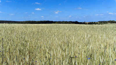 Wheat field with young and green wheat in spring