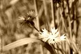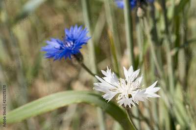 blue and white rare albino cornflower in wheat field