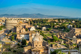 Aerial view of Colosseum, Roman Forum and Palatine Hill in Rome.