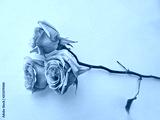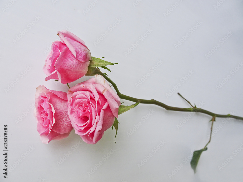 Branch of pink roses on a white background. Buds of pink roses. Macro. Side view