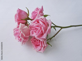 Branch of pink roses on a white background. Buds of pink roses. Macro. Side view