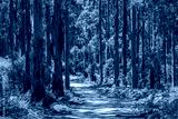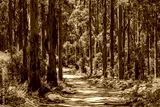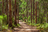 Landscape view of forestry track winding through a tall Karri Forest at Boranup in Western Australia.