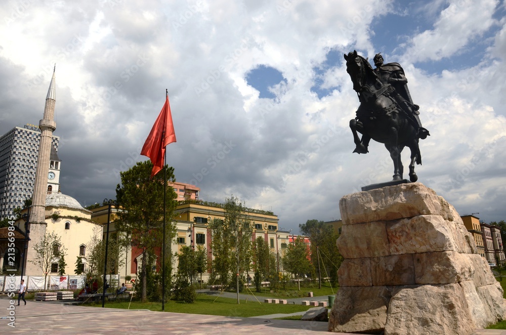 Place Skanderbeg de Tirana (Albanie) : Statue de Gjergj Kastriot Skanderbeg