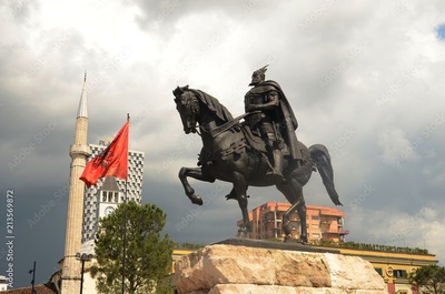 Place Skanderbeg de Tirana (Albanie) : Statue de Gjergj Kastriot Skanderbeg