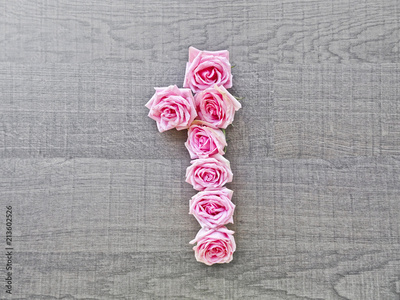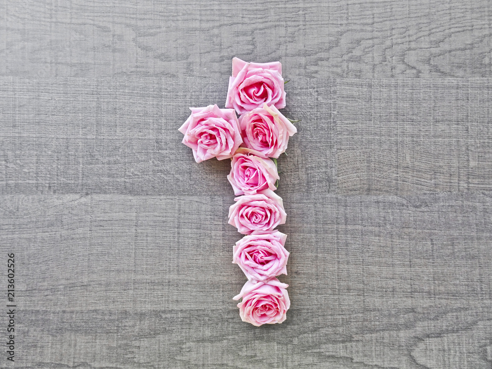 1, one - vintage number of pink roses on the background of dark wood - for congratulations, postcards, websites, design, printing