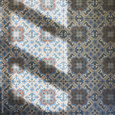 Tiles decoration floor Asian art pattern with sun light shade shadow