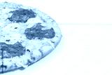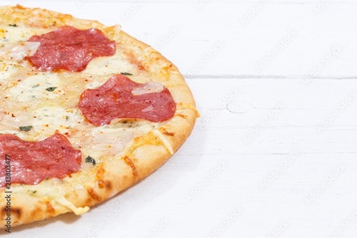 Pizza Salami Textfreiraum Copyspace auf Holzbrett