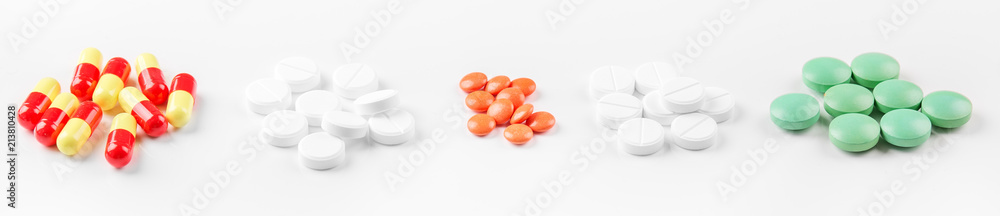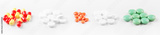 Different tablets. Banner for the site. The concept of medicine, disease, health.