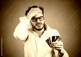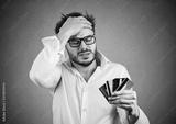Stressed man having debts with credit card