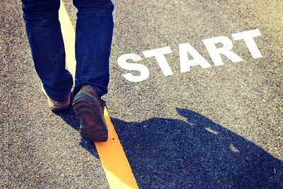 Abstract man walking on the road