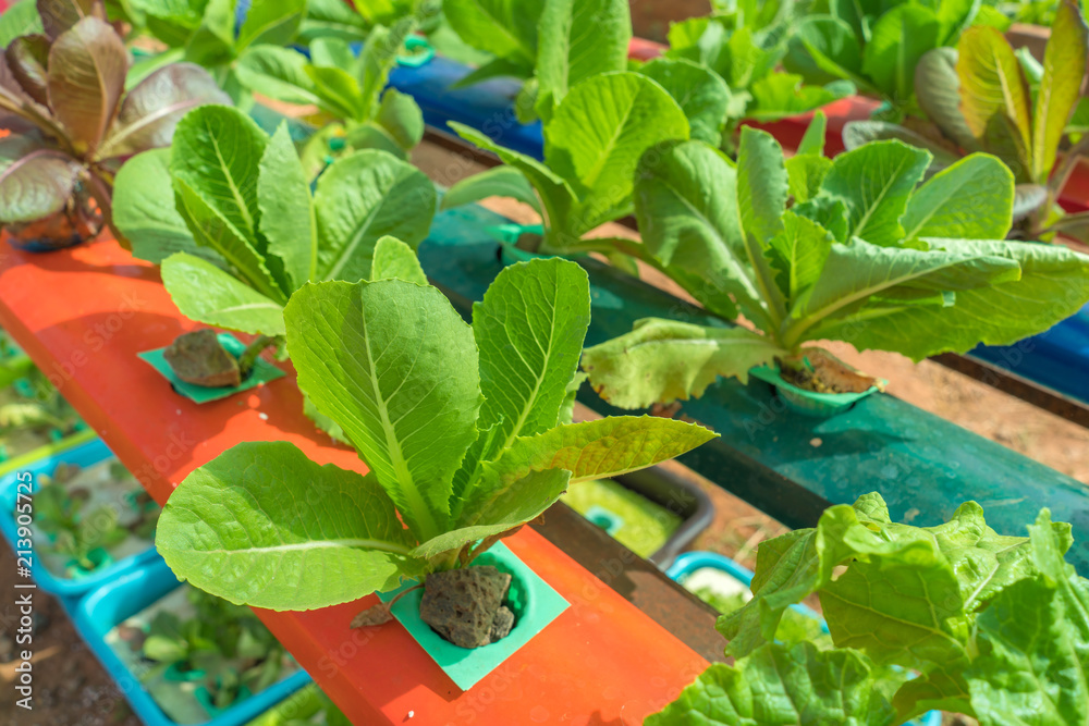 Organic hydroponic vegetable in the cultivation farm
