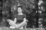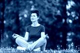 Aged female doing yoga exercise in park. Senior woman practicing yoga outdor. Heathy life style concept. Copyspace.