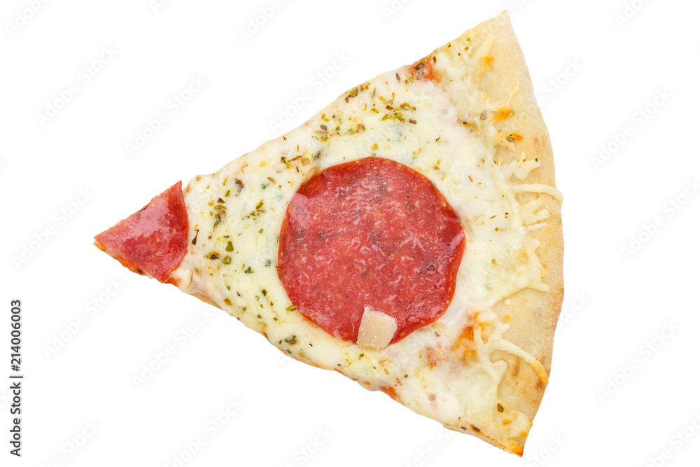 Pizza Salami Stück von oben Freisteller freigestellt isoliert