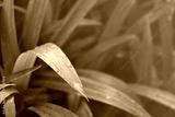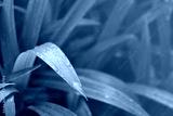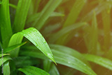 Pandanus leaves with water drops and orange light in the morning. Selective focus.
