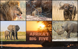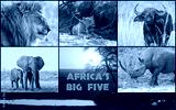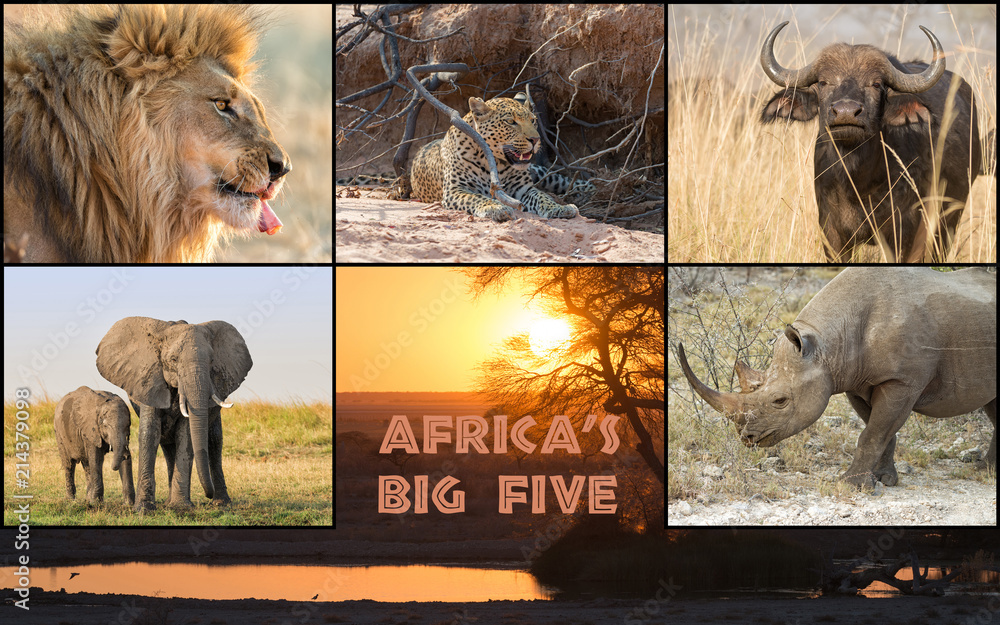 Big Five African animals: lion, leopard, buffalo, elephant, rhinoceros