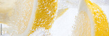 In a glass with cubes of melting ice slices of a juicy lemon.