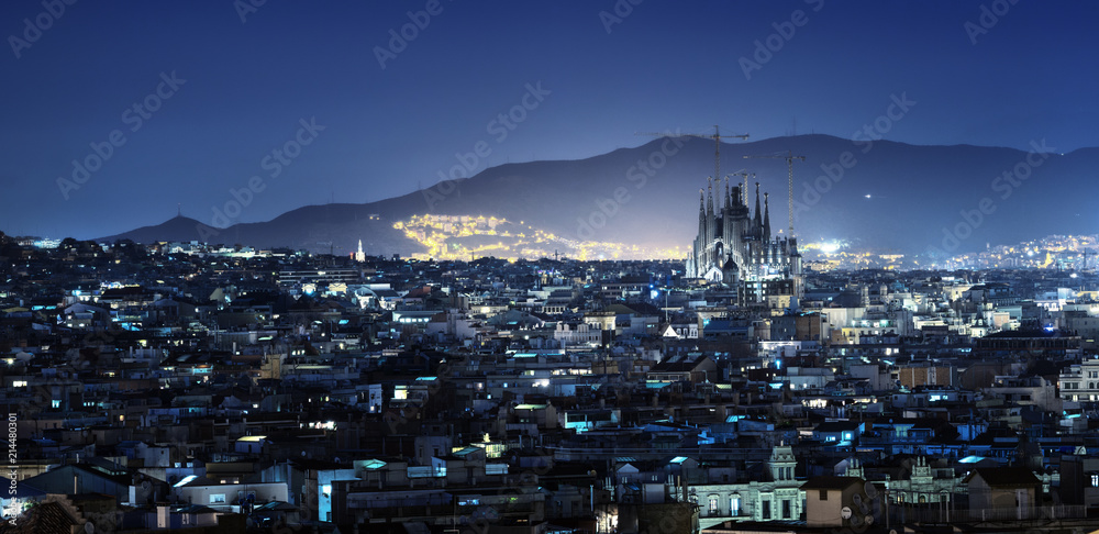 Barcelona in sunset time, Spain