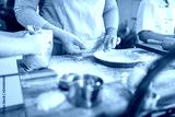 Mother and children together making apple pie in the kitchen at home. Children helping mother. Kitchen Activities for Children