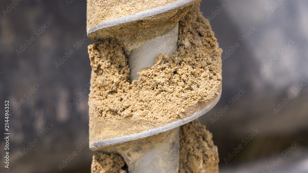 Geotechnical investigation, Drilling for soil samples - clayey sand (close up)