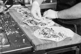 Chef's hands preparing mexican tacos at a street food market, festival, event. Process cooking. Street food concept. Selective focus. copy space.