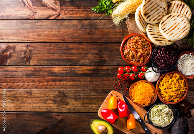 Several ingredients for cooking and filling arepas, typical Latin American food.