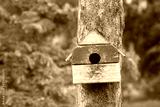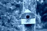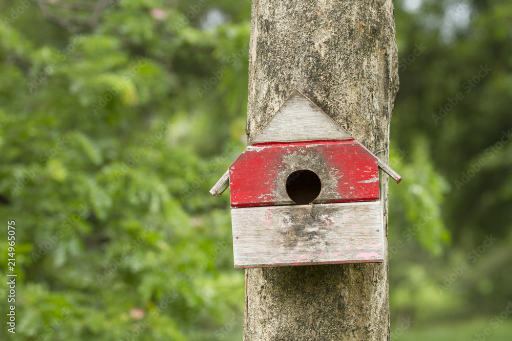 Bird house nesting-box hang on tree trunk