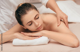 Young smiling woman receiving back massage from a massage professional at beauty salon