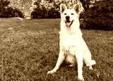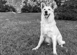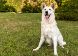 White Swiss Shepherd dog outdoor on the grass.
