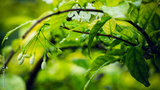 Green leaves and rain drops in the rainy season. For the natural background