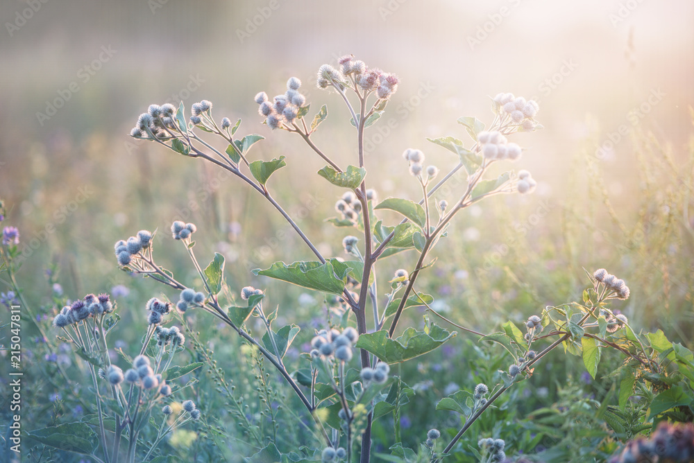 Blossoming agrimony in the sunlight at sunset