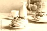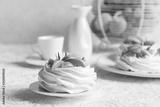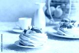 Homemade mini Pavlova, a meringue-based dessert with cream cheese and fruits