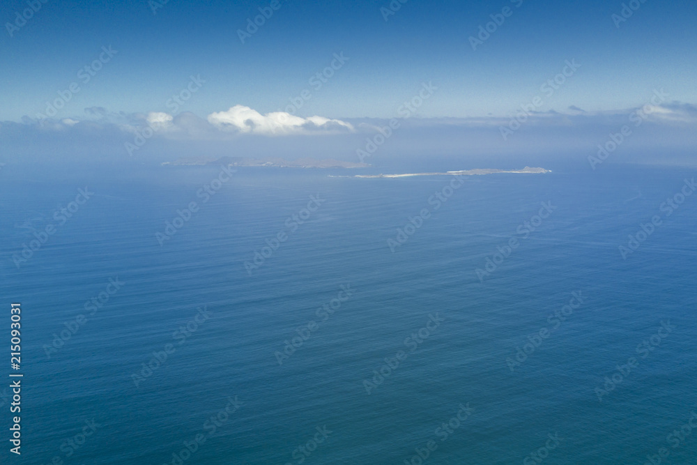 Damas Island at Atacama Desert amazing wild beaches. An aerial view of the Pacific Ocean crashing the land at the islands of Atacama region, Chile