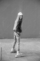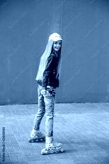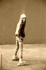 Young girl on rollerblades in the city