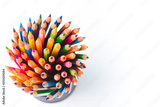 Education or back to school Concept. Close up macro shot of color pencil pile pencil nibs on white background.