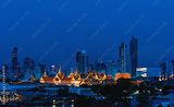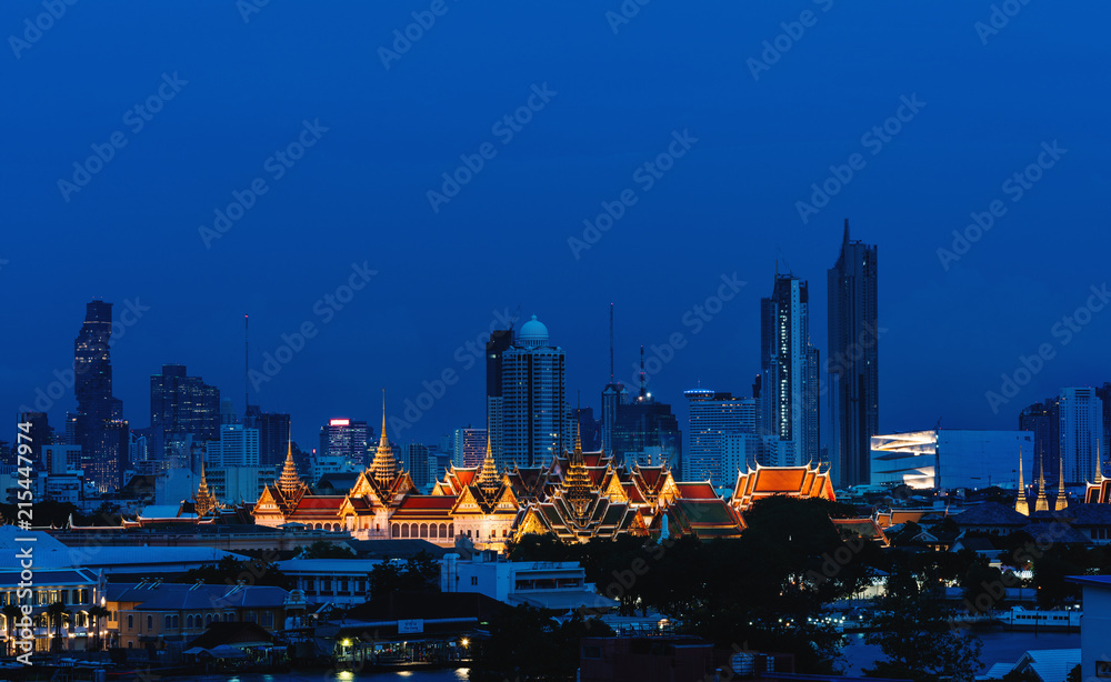 Grand palace and Wat Phra Kaew surround by modern buildings, in Bangkok city Thailand