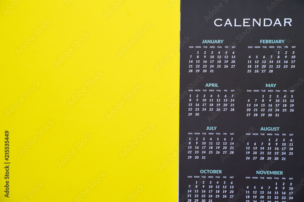 close up of calendar on yellow background, planning for business meeting or travel planning concept