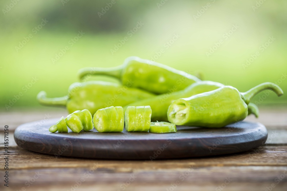 sliced pepper vegetable on wooden table