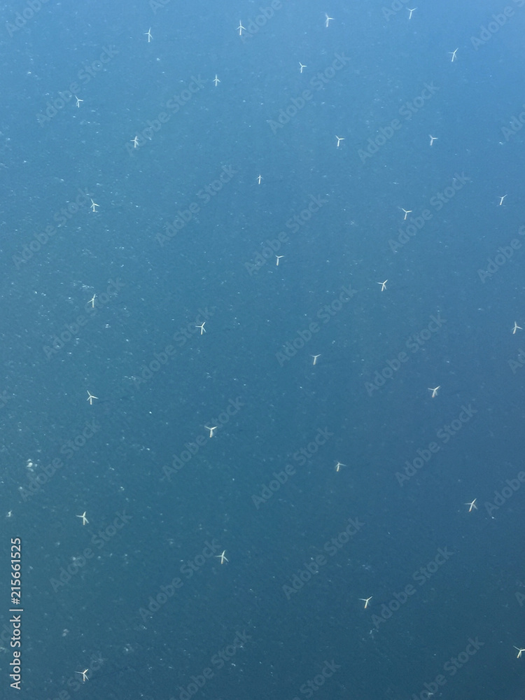 Offshore wind turbines photographed from high overhead