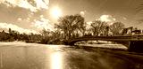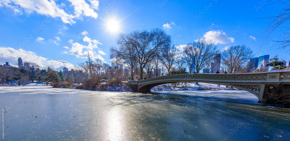 Bow bridge in the winter at sunny day, Central Park, Manhattan, New York City, USA